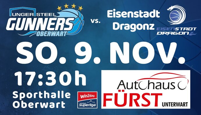 Der 9. Spieltag der win2day Basketball Superliga ist im Kalender der UNGER STEEL Gunners rot angestrichen. Immerhin kommt es gegen die COLDAMARIS Eisenstadt Dragonz zur Neuauflage des denkwürdigen Meisterschaftsfinales der letzten Saison. Das den Gunners ohne eine einzige Niederlage den 4. Staatsmeistertitel gebracht hat.