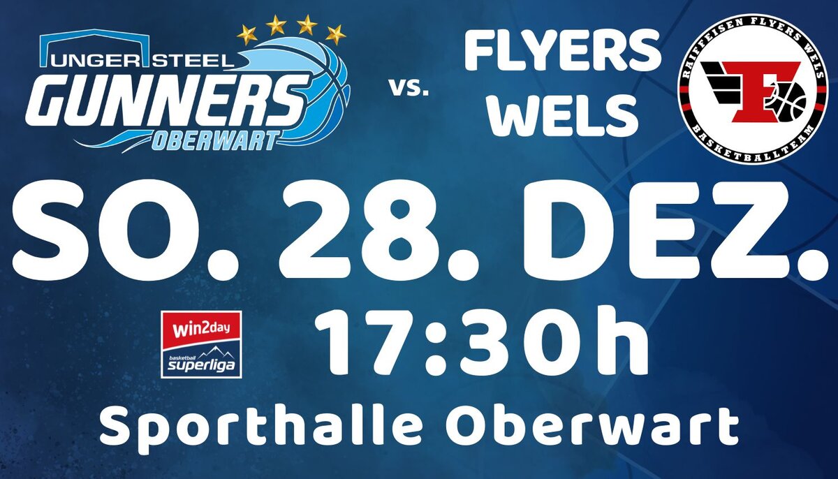 Es ist das letzte Heimspiel des Jahres 2025. Die UNGER STEEL Gunners Oberwart empfangen die Raiffeisen Flyers Wels. In mehrerlei Hinsicht ein absolutes Top-Spiel!