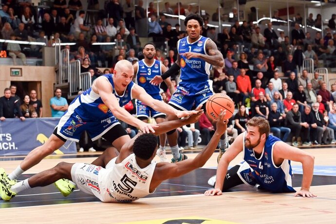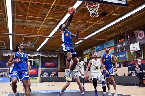 Die Gunners starten zunächst ohne Kapitän Basti Käferle und gehen rasch durch 2 Punkte von Nate Pierre Louis in Führung.